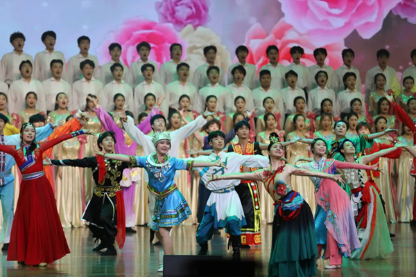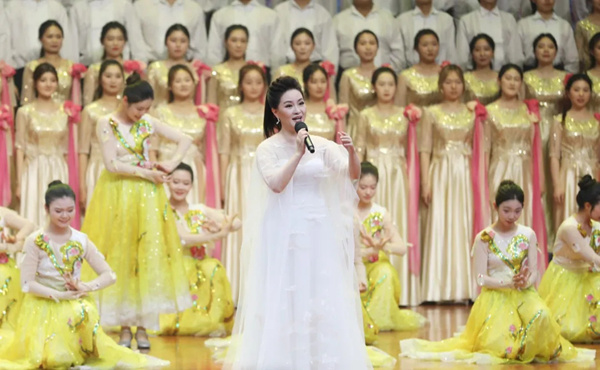 6月27日,“向人民汇报”——中国音协第三期全国中青年少数民族声乐骨干培训班送欢乐下基层走进石河子大学慰问演出活动现场。 6月27日晚,随着开场歌舞《中华民族一家亲》的旋律响起,“向人民汇报”——中国音协第三期全国中青年少数民族声乐骨干培训班送欢乐下基层走进石河子大学慰问演出正式拉开帷幕。迪里拜尔、雷佳、王宏伟、石倚洁、阿依古丽·吾拉木(维吾尔族)、白云升、周彬、夏德奇、范双燕(回族)、肖雨杭、唐玉颜、杜丹、岳益飞、杜瑶、江南、苏焱(回族)、王旭锋、王诗喆等此次培训班的授课专家、学员,以及石河子大学舞蹈团、合唱团共同演绎了一场精彩绝伦的视听盛宴。演出由马永泽、付蓉主持。 音乐家们分别给石河子大学的师生们带来了《青春舞曲》《来到遥远的地方》《故乡是北京》《多么快乐的一天》《在希望的田野上》《那片海》《大江南》《兵团的心》《向往》《啊,我的太阳》《我爱你中国》《美丽的新疆我的家》《永恒的爱》《天路》《一杯美酒》《芦花》《阳光路上》等众多精彩节目。石倚洁在现场还为观众带来曲目《缆车》,王宏伟还演唱了《儿行千里》和《草原升起不落的太阳》,展现了这些传唱不衰的歌曲的经典魅力。石河子大学舞蹈团、石河子大学合唱团表演开场歌舞《中华民族一家亲》(新疆民歌)阿依古丽·吾拉木(维吾尔族)女声独唱《青春舞曲》(新疆民歌)