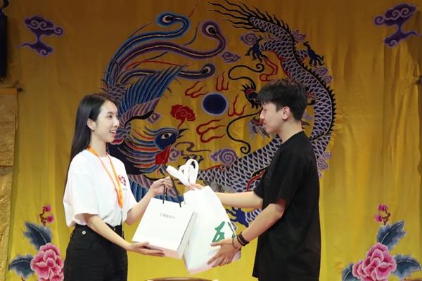 中央戏剧学院院长郝戎与相声天团团长姬天语互赠团体纪念牌