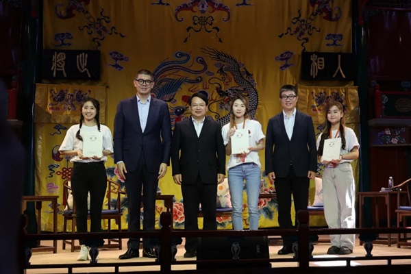 中国曲协驻会副主席杨发航、中央戏剧学院院长郝戎、中国国民党副主席连胜文共同为台湾青年学员颁发结课证书